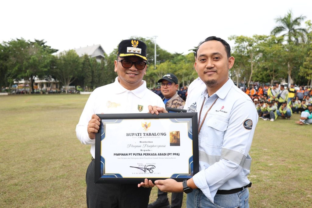 Penghargaan tersebut diserahkan langsung oleh H. M. Noor Rifani selaku Bupati Tabalong kepada Singgieh Prananda selaku Section Head HCGA PPA dalam Apel Peringatan Hari Peduli Sampah Nasional (HPSN) 2026 yang digelar di Halaman Pendopo Bersinar, Sabtu (28/2/2026). Kegiatan ini turut dihadiri oleh para penanggung jawab titik pantau Adipura Tahun 2025, perwakilan kelompok swadaya masyarakat (KSM), perwakilan perusahaan dari berbagai sektor industri yang beroperasi di Tabalong, serta para petugas kebersihan Daerah Tabalong.